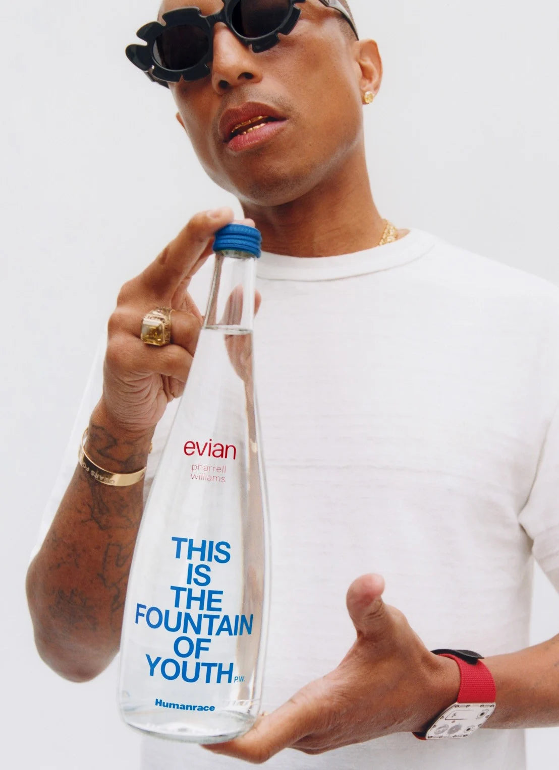 Discover evian's latest Limited-Edition “Fountain of Youth” bottles, designed by Pharrell Williams x Humanrace.